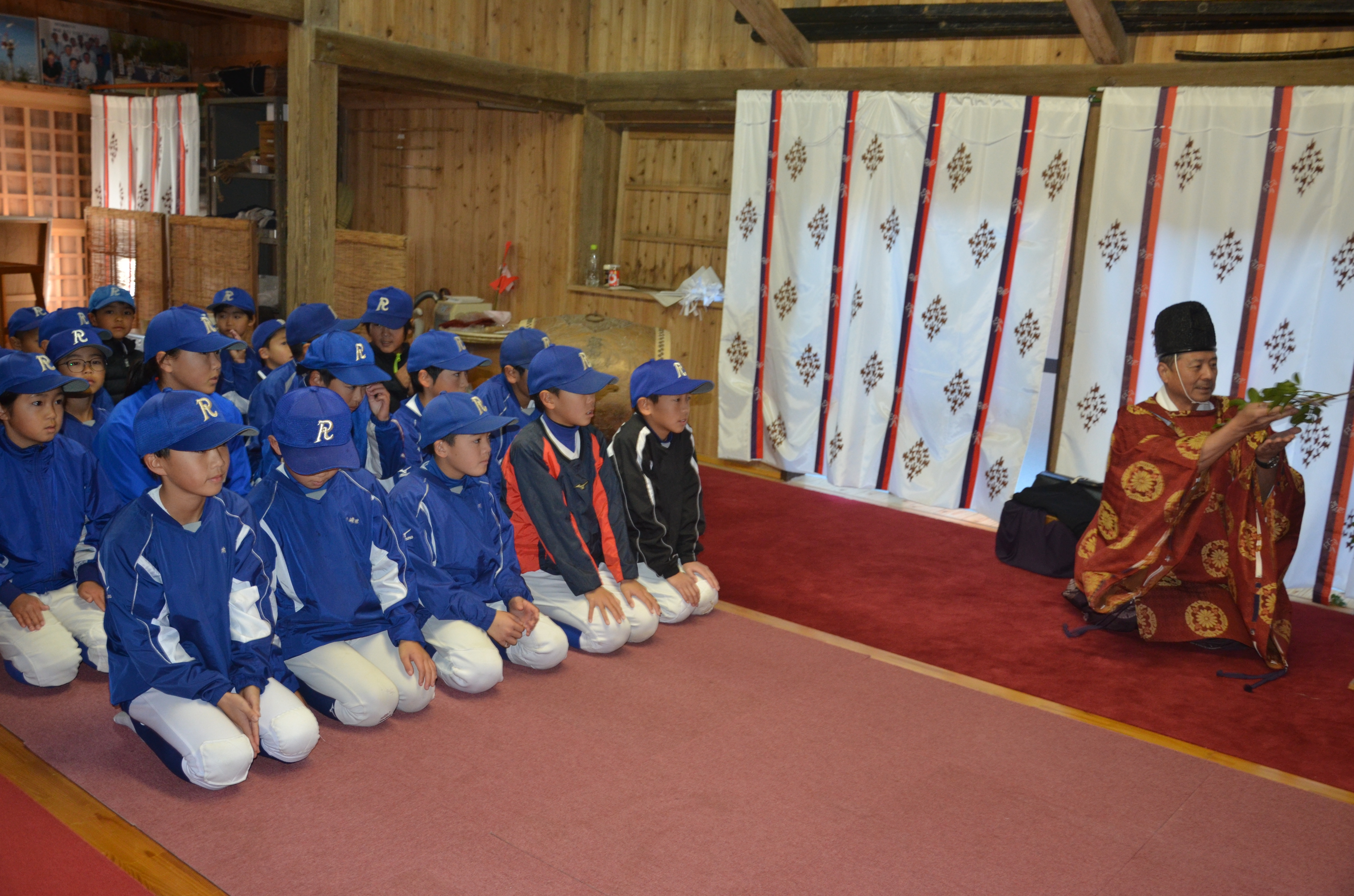 行きは団員、指導者、保護者みんなで神社まで歩いて行き、祈願後団員は加納グランドまで走りました。少し距離はありましたが、年長児から6年生までみんなが完走することができ今年もいいスタートをきることができました(^^)